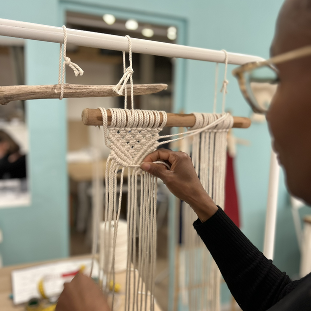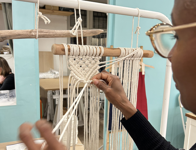 Atelier macramé mural sur bois flotté
